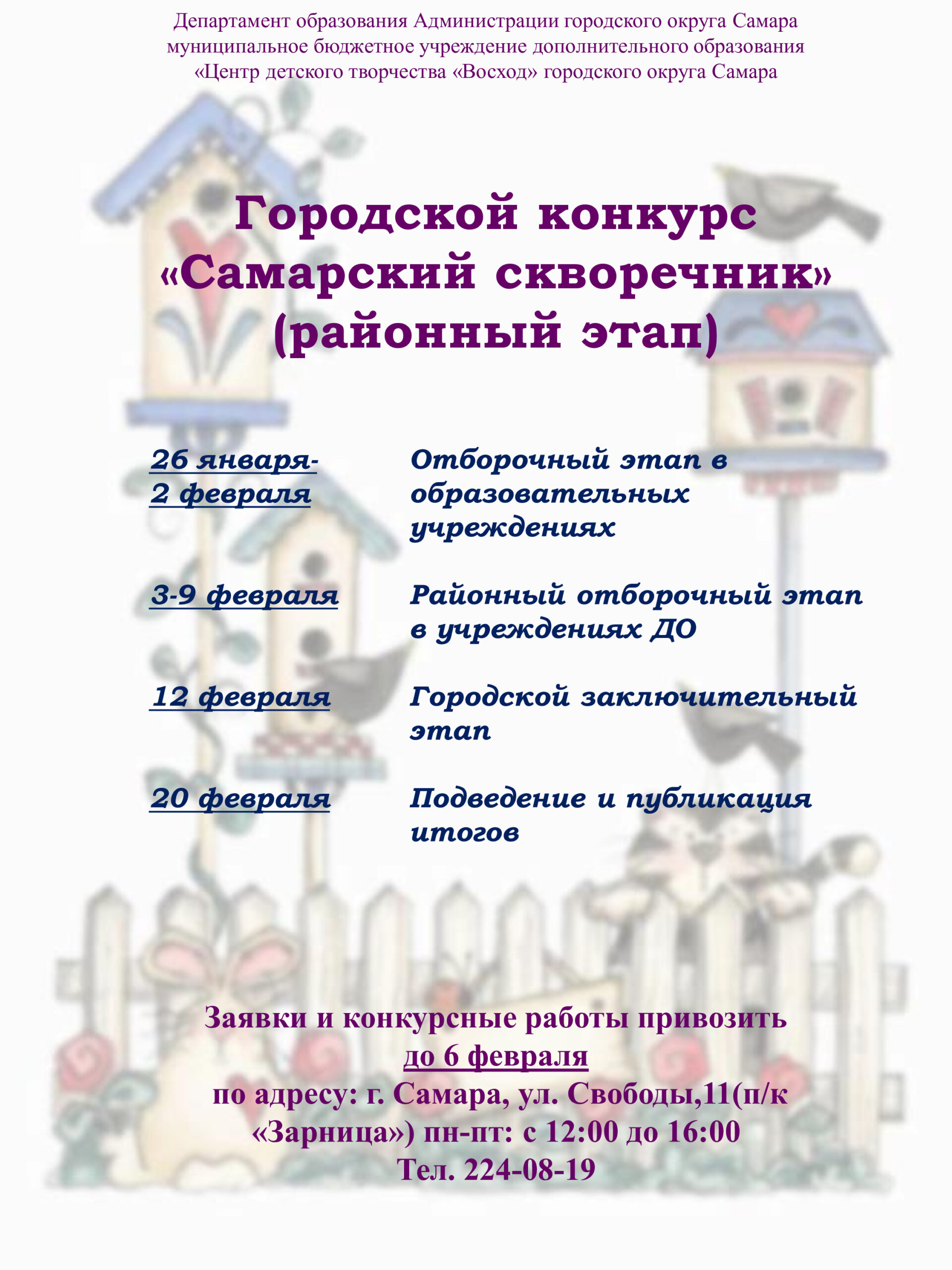 Результаты районного этапа городского конкурса «Самарский скворечник»