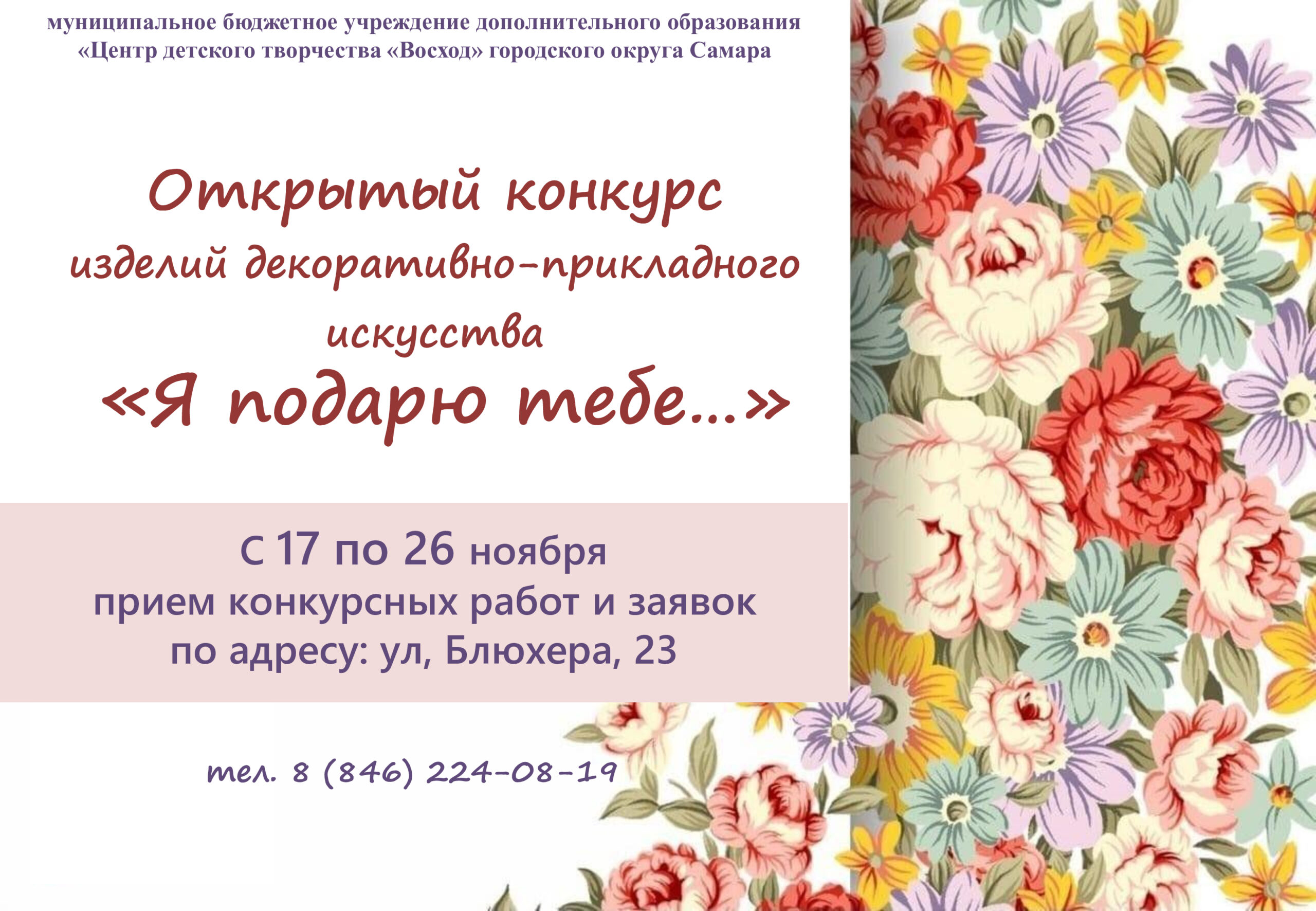 Приглашаем принять участие в открытом конкурсе изделий декоративно-прикладного искусства «Я подарю тебе…»