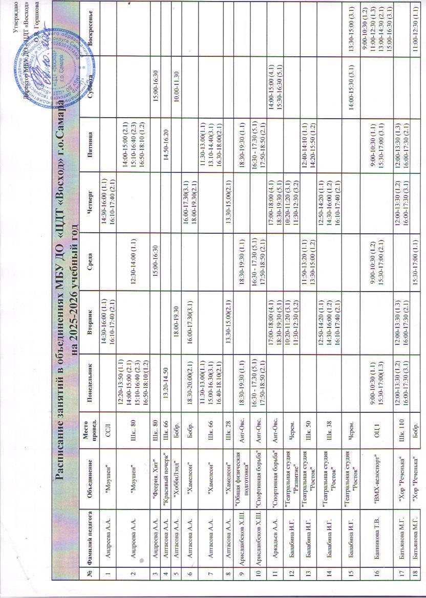 Расписание